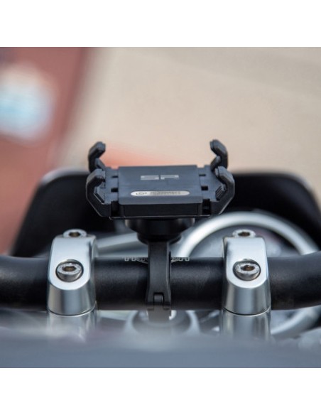 El soporte universal de smartphone para moto SP Connect Universal Phone Clamp SPC+ le permite fijar su SmartPhone en su motocicleta en cuestión de segundos.