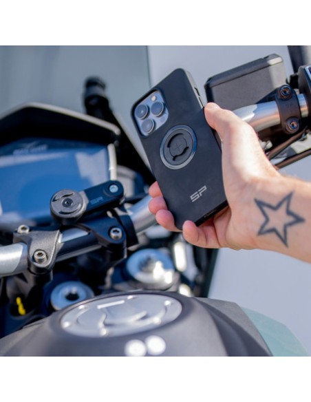 Conecte la funda para Smartphone SP Connect u otros dispositivos compatibles con SP Connect a su moto con el soporte smartphone para manillar de moto SP Connect Moto Mount LT. El soporte está fabricado en PVC de alta resistencia. Es posible instalarlo en manillares standards y de gran diámetro; 22,2mm, 25,4mm, 28,6mm, 31,8mm.