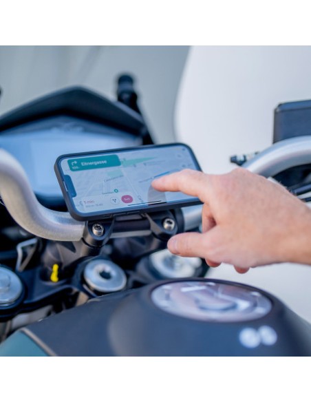 Atención: Si utiliza un smartphone con un estabilizador de imagen mecánico, recomendamos el uso de nuestro módulo reductor de vibraciones adicional, el Anti Vibration Module, para evitar de la mejor manera los posibles daños en el estabilizador de la cámara del teléfono causado por las vibraciones del motor de la moto. Si sigue teniendo problemas, no utilice el producto en combinación con este smartphone y póngase en contacto con el fabricante de su smartphone si no está seguro.