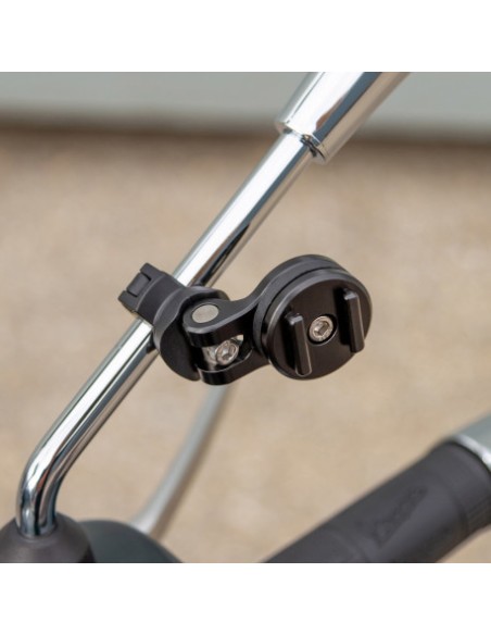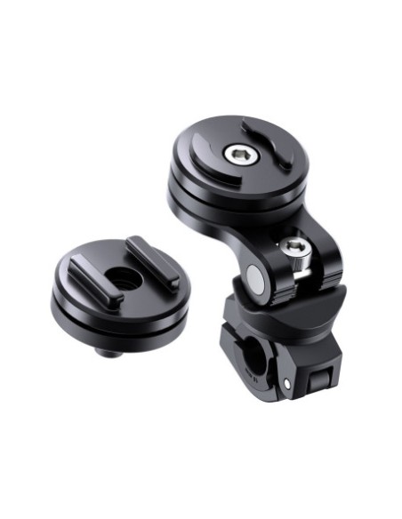 El soporte para smartphone para espejo retrovisor de moto SP Connect Mirror Mount Pro le permite fijar su SmartPhone en su scooter o motocicleta en cuestión de segundos. Además dispone de un cabezal giratorio e inclinable para que su smartphone quede en una posición perfecta.