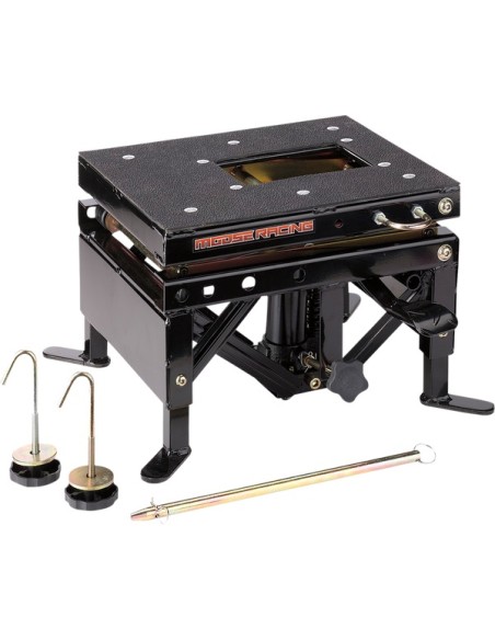 - Incluye una barra de bloqueo para evitar que la motocicleta se caiga involuntariamente mientras está en posición elevada