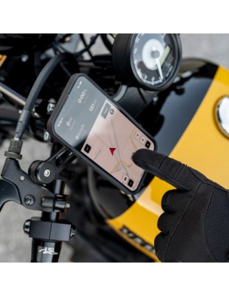 Esto no solo protege su teléfono inteligente, sino que se mantiene estable y montado de forma segura para que pueda navegar fácilmente mientras conduce. Un accesorio ideal para aquellos motoristas que utilizan su moto fuera del asfalto.