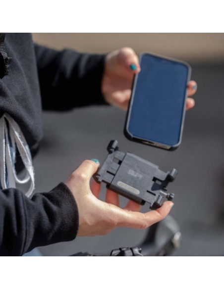 Atención: Si utiliza un smartphone con un estabilizador de imagen mecánico, recomendamos el uso de nuestro módulo reductor de vibraciones adicional, el Anti Vibration Module, para evitar de la mejor manera los posibles daños en el estabilizador de la cámara del teléfono causado por las vibraciones del motor de la moto. Si sigue teniendo problemas, no utilice el producto en combinación con este smartphone y póngase en contacto con el fabricante de su smartphone si no está seguro.