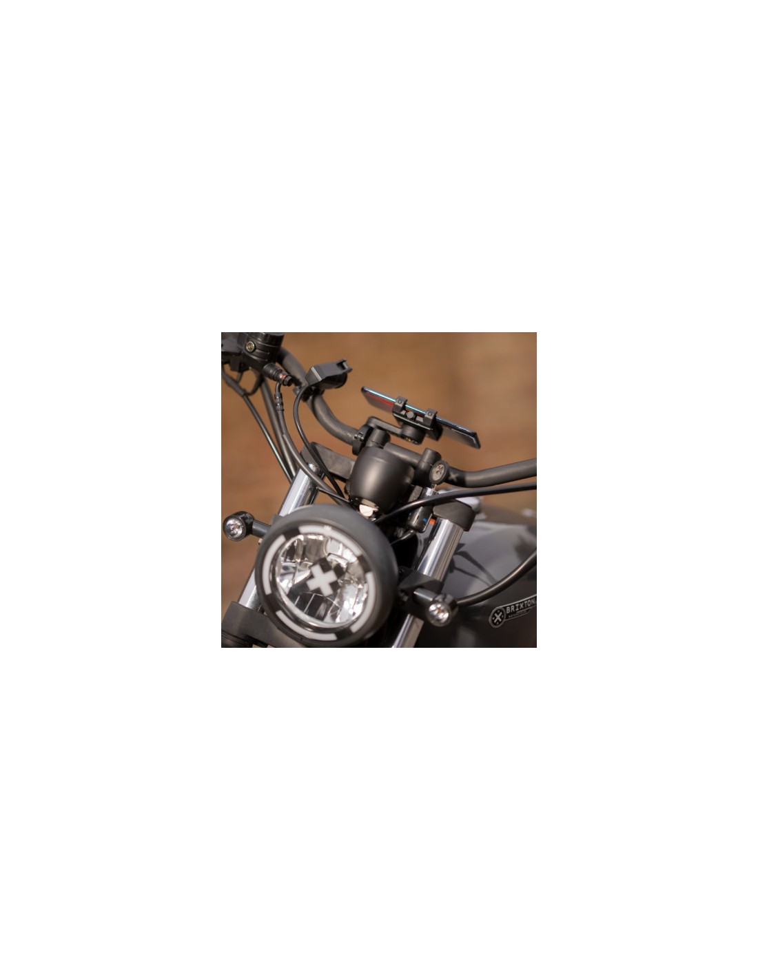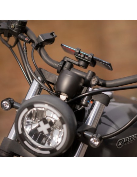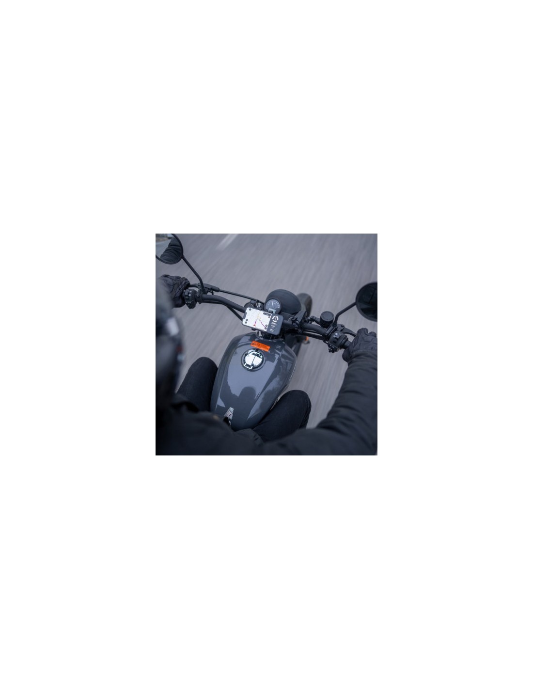 Su teléfono móvil quedará fijado de forma segura en su campo de visión, lo que le permite navegar o acceder a sus listas de reproducción.