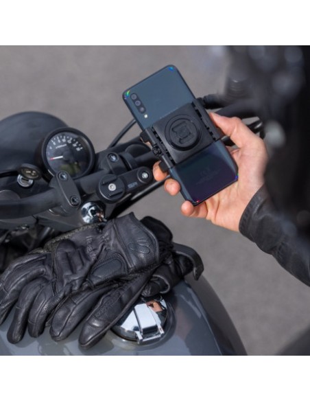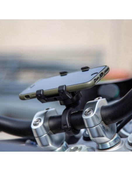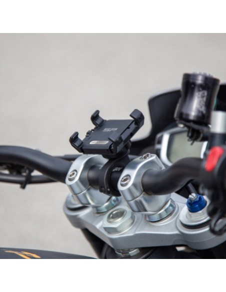 El soporte universal de smartphone para moto SP Connect Universal Phone Clamp SPC+ le permite fijar su SmartPhone en su motocicleta en cuestión de segundos.