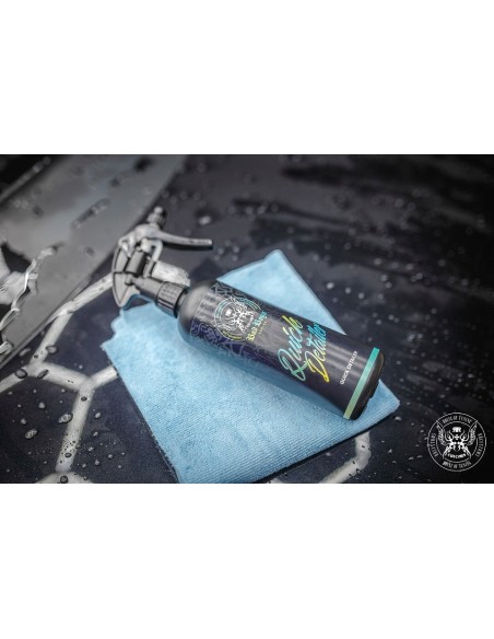 - Aplicación sobre pintura seca: use dos toallas suaves de microfibra, rocíe el agente sobre la microfibra y frote la superficie, con una segunda microfibra, limpie el exceso de Quick Detailer para obtener brillo.