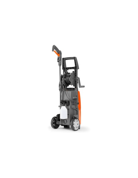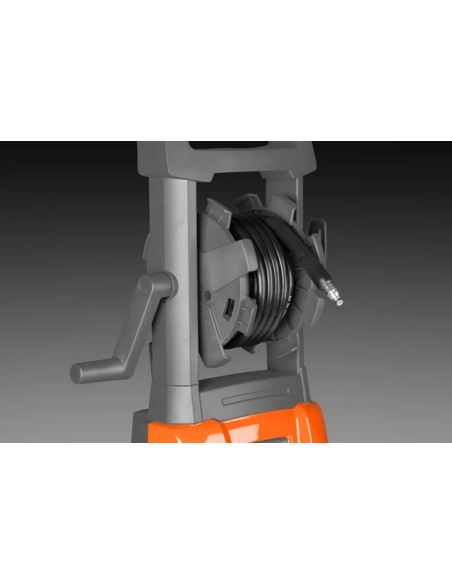 La manguera se almacena en la propia hidrolimpiadora con tan solo enrollarla.