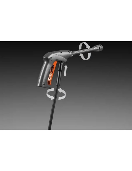 La lanza de pulverización gira hacia ambos y dispone de acoples rápidos para mangueras, boquillas y accesorios.