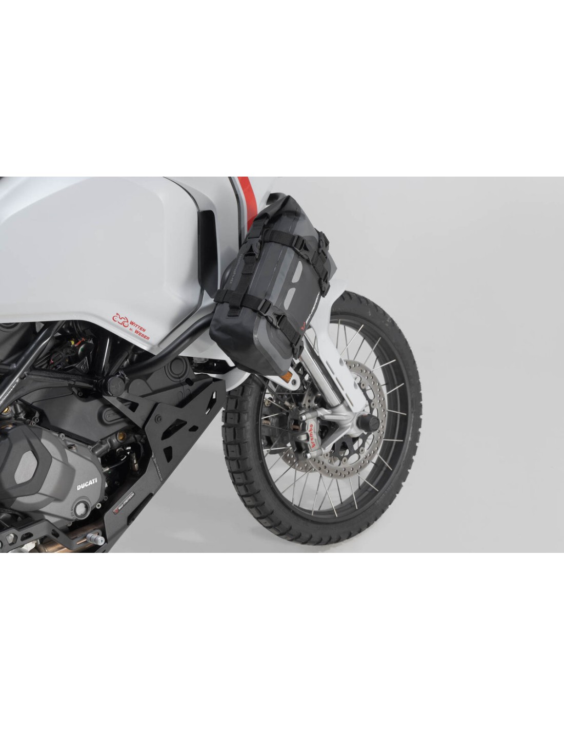 La pequeña Drybag 80 es la compañera perfecta para una aventura en moto. Se puede fijar a las protecciones laterales de motor, al asiento trasero o al portaequipaje, donde cumple de forma fiable su función como práctico espacio de almacenamiento para cualquier fin. La Drybag 80 también puede engancharse a modelos más grandes (de la Drybag 350 en adelante) o simplemente usarse como bolso para el hombro. Disponibles en seis tamaños, nuestras bolsas Drybag aportan algo único a todos los viajes en moto y