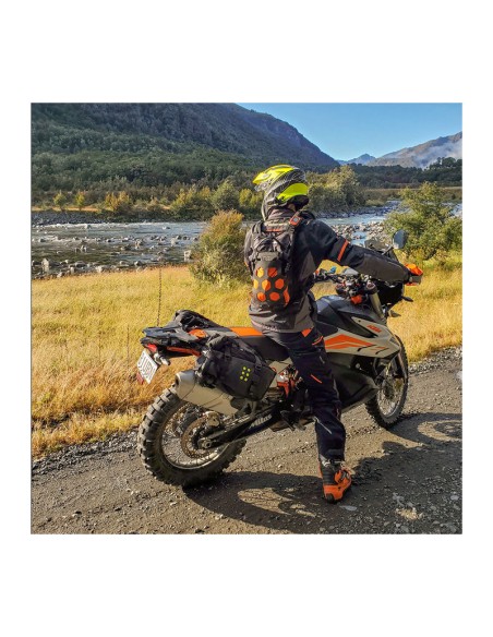 La mochila de moto Kriega Trail 9 Adventure BackPack es la mochila de aventura definitiva. Fabricada en Cordura y Hypalon de alta duración combinados con el arnés Quadloc-Lite. Dispone de un compartimento 100% impermeable con cierre enrollable de 4L de capacidad y un co