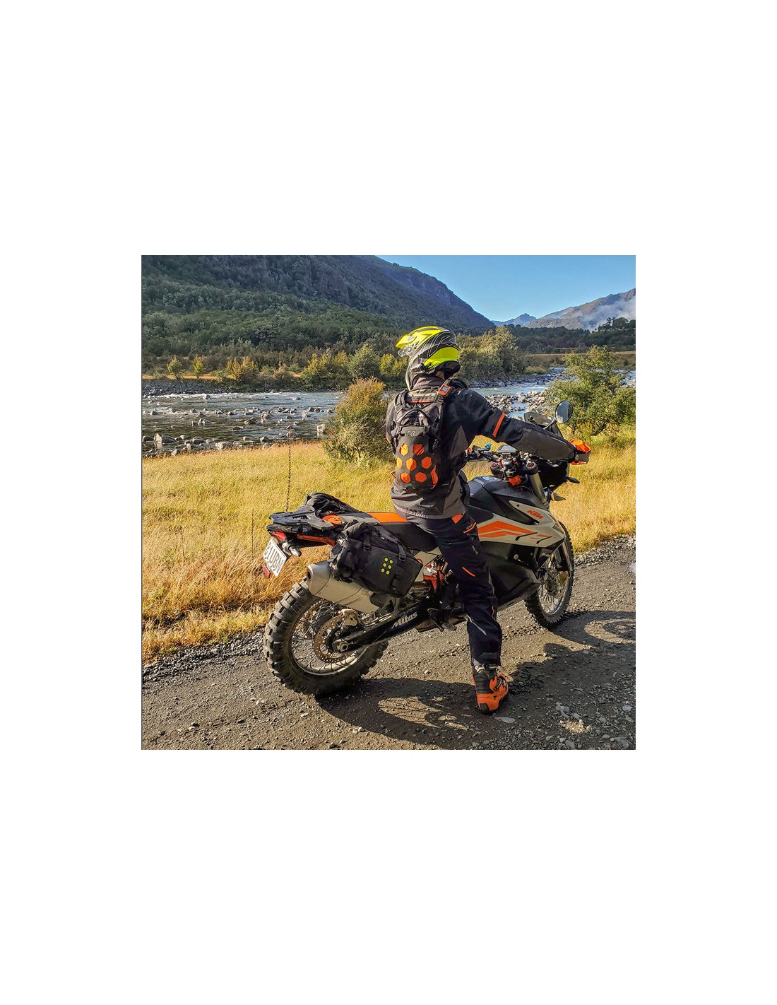 La mochila de moto Kriega Trail 9 Adventure BackPack es la mochila de aventura definitiva. Fabricada en Cordura y Hypalon de alta duración combinados con el arnés Quadloc-Lite. Dispone de un compartimento 100% impermeable con cierre enrollable de 4L de capacidad y un compartimento de hidratación por separado con cierre de cremallera y 5L de capacidad, compatible con los 3 tamaños de bolsas de hidratación que se pueden adquirir de forma opcional.