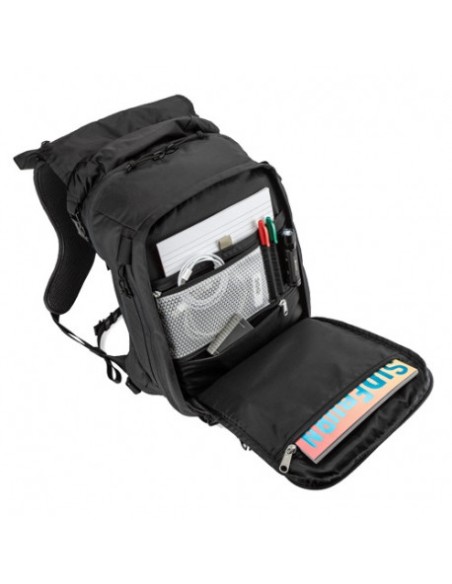 • Bolsillo impermeable para portátil de 15 ”con tapa enrollable. (tamaño máximo 360 x 245 mm / 14,2 "x 9,64")