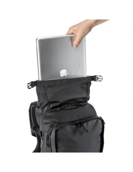 Compartimento 100% impermeable para almacenar objetos electrónicos con capacidad para un portátil de 14", múltiples bolsillos organizadores para objetos más pequeños y compatible con sistema de hidratación.