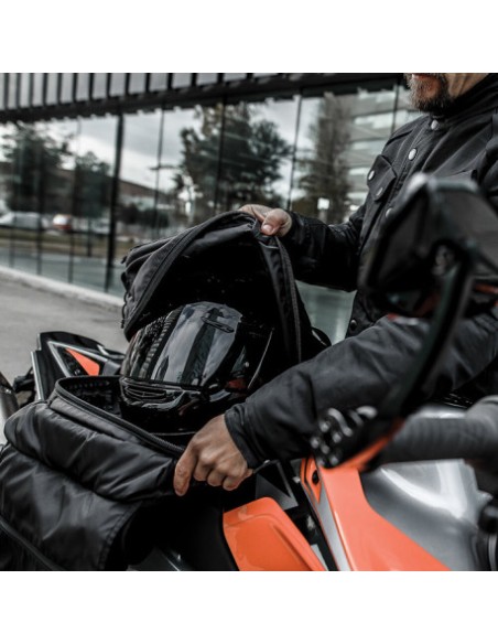 El compartimento principal con cierre con cremallera se expande de 22 a 28L, ideal para llevar un casco integral cuando se da un paseo por la ciudad o cargar con esas compras de última hora.