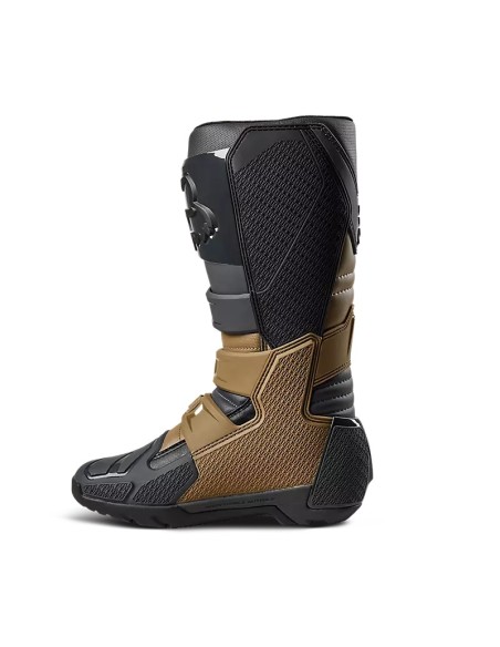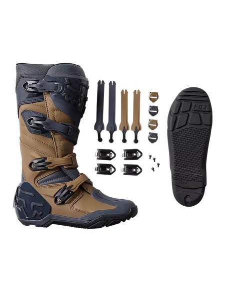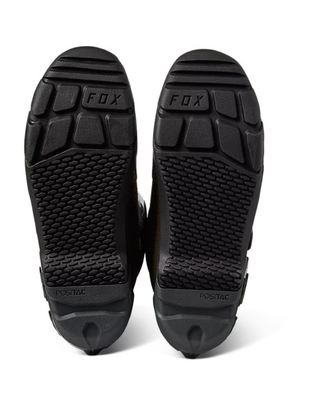 Todas las características técnicas de las populares botas Comp, pero con una tracción mejorada en la suela exterior para un agarre excepcional en todo tipo de terrenos. La última versión renovada y mejorada de nuestras botas Comp X ofrece comodidad instantánea y un excelente ajuste. Las Comp X, que reúnen todo lo esencial para el motocross, son las botas de dirt-track ideales para todos los niveles, desde principiantes a profesionales. Sobre la moto, demuestran lo que valen: la parte superior de piel sintética de microfibra ofrece un nivel superior de comodidad, ajuste y resistencia, mientras que el forro de malla añade ese plus de transpirabilidad que necesitas. Estas botas aportan sujeción y seguridad tanto en pista como fuera de los caminos gracias a la combinación de espinillera, puntera, talonera y protecciones para el tobillo, el gemelo y antiabrasión de TPU, que garantizan una buena cobertura. El nuevo sistema de cierre regulable con cuatro hebillas asegura un ajuste óptimo y fiable. Además, la plantilla de material compuesto asegura estabilidad y sujeción desde los dedos al talón y en los laterales para que puedas apoyarte bien en los estribos. También hay que sumar nuestro exclusivo compuesto de caucho Fox POSITAC™, que incrementa la resistencia de la suela exterior y le da un agarre sin precedentes. Y lo mejor de todo es que las botas Comp de motocross permiten cambiar la suela, lo que amplía su vida útil.