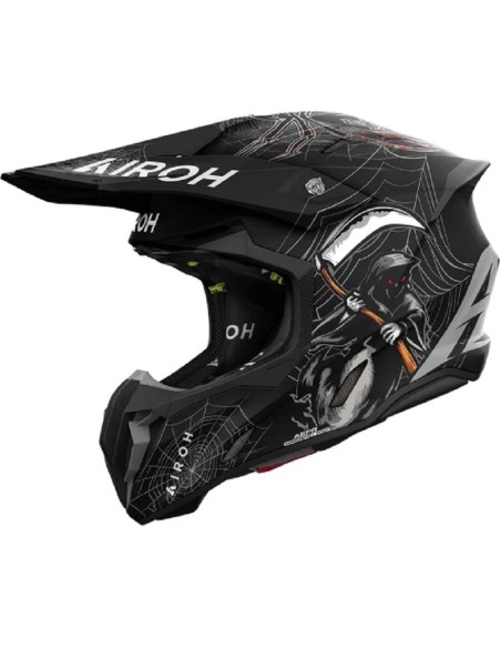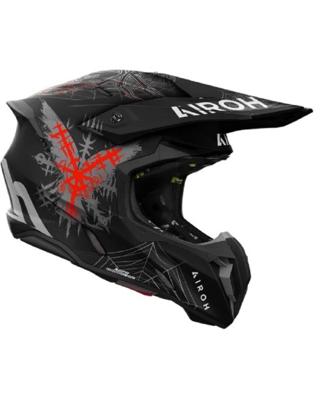 Casco Airoh Twist 3 Amazonia. Casco ideal para los amantes del motocross, su calota está fabricada con resina termoplástica HRT (High Resistant Thermoplastic) de gran resistencia. Incorpora la tecnología ASN (Airoh Sliding Net), y el sistema A.E.F.R. para hacer más fácil la extracción del casco en caso de accidente. Varias entradas y salidas de aire en la parte superior, mentonera y mandíbula para una mejor