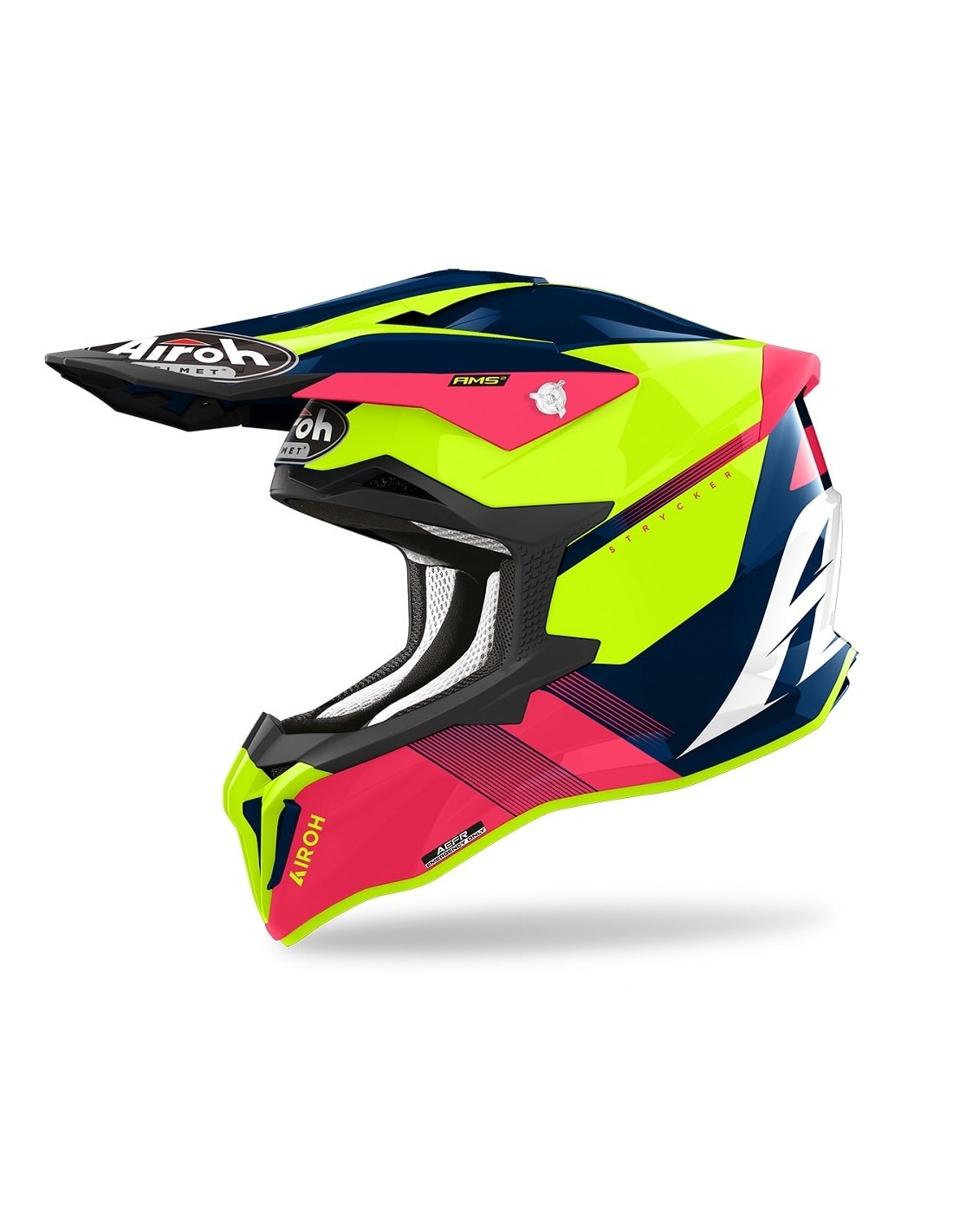 • El Strycker incorpora el sistema de protección AMS2 (Airoh Multiaction Safety Sistem) que proporciona mayor seguridad, ventilación y confort. Se trata de un sistema que ofrece una mayor absorción de la energía rotacional transmitida a la cabeza en caso de un impacto angular, reduciendo de esta manera los riegos de lesión cerebral. Tecnología patentada por Airoh.