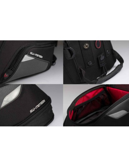 Las bolsas de depósito de primera calidad de la serie EVO convencen por su acabado de calidad, por su completo equipamiento y por su idoneidad tan bien concebida para el uso diario. Con solo un movimiento, la bolsa de depósito queda fijada al anillo de depósito EVO y, en los descansos o paradas para repostar, se retira con la misma rapidez. El uso del resistente nailon ballistic, originalmente concebido para fines militares, garantiza la durabilidad de las bolsas de depósito EVO.