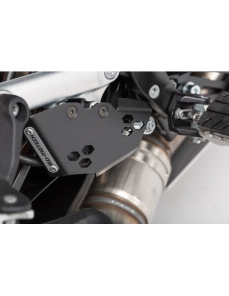 El protector de aluminio plegado por láser protege el cilindro del freno de pie, también del contacto accidental con las botas.