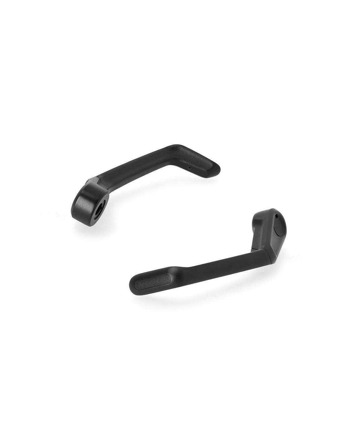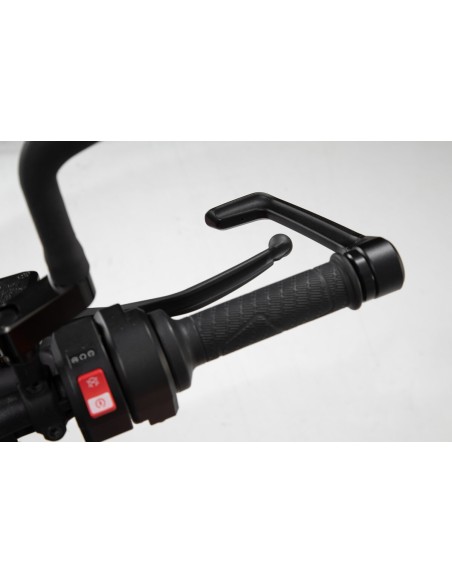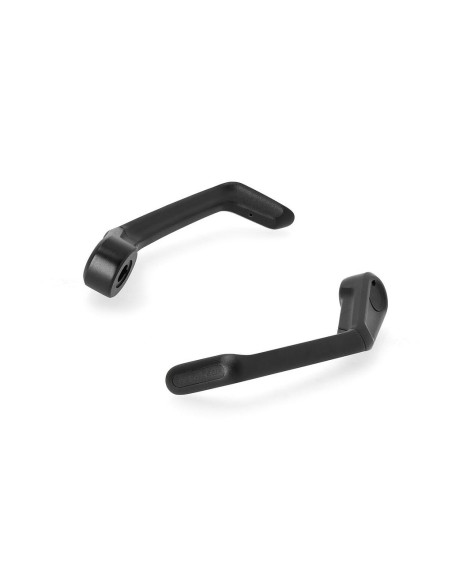 Estos elegantes protectores de maneta, fabricados en aluminio con anodizado negro, son un punto de atracción visual a la vez que un elemento protector. Originarios de las pistas de carreras, son un complemento de alta exigencia también en las vías públicas para motociclistas conocedores del buen estilo. El montaje se realiza en los laterales del manillar, mediante tornillos específicos de cada modelo que van incluidos en el contenido de la entrega.