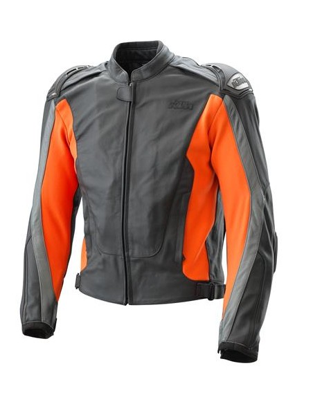 RSX Jacket Chaqueta de cuero de competición con opción personalizable Cuero de vacuno de 1,2 mm - 1,3 mm También disponible en cuero de canguro Protectores de codo y hombros integrados extraíbles Aplicaciones elásticas para un ajuste óptimo Corte deportivo para Touring Corte especial (corto por delante y largo por detrás) para lograr una adaptación perfecta durante la conducción Bolsillo para protector de espalda SAS-TEC opcional También disponible a medida 80 % cuero / 20 % fibras de aramida