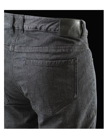 - Material denim elástico slim fit con insertos de aramida resistentes a la fricción
